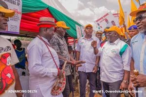 On his part, the Delta State PDP Governorship Candidate and Speaker of the State House of Assembly, Rt. Hon. Sheriff Oborevwori, while addressing the people of Ughelli South Wards 1, 2, 3, 4, 5, and 6, assured them that his M.O.R.E agenda will bring meaningful development, opportunities for all, realistic reforms, and enhanced peace and security.
