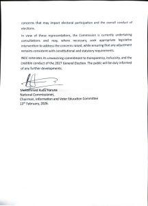 “The Commission wishes to assure the public that it remains sensitive to all legitimate concerns that may impact electoral participation and the overall conduct of elections.”
