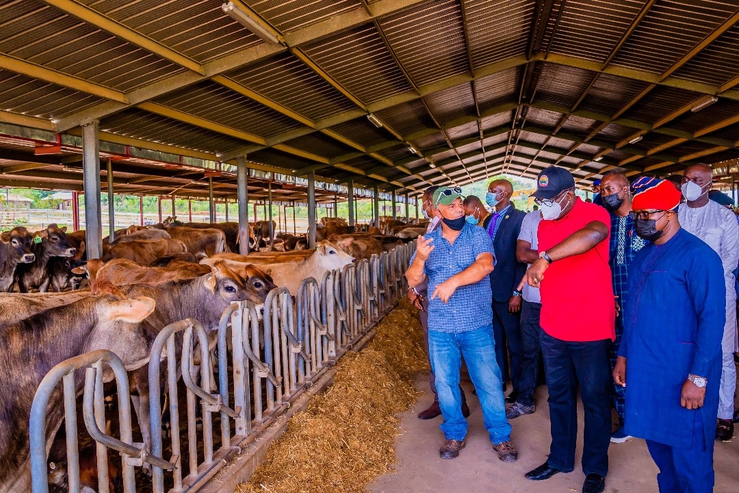 The governor visited the facility in company of the General Manager, of the farm, Mr Hermann Kibler, and the Commissioner for Agriculture and Food Security, Mr Olabode Adetoyi.