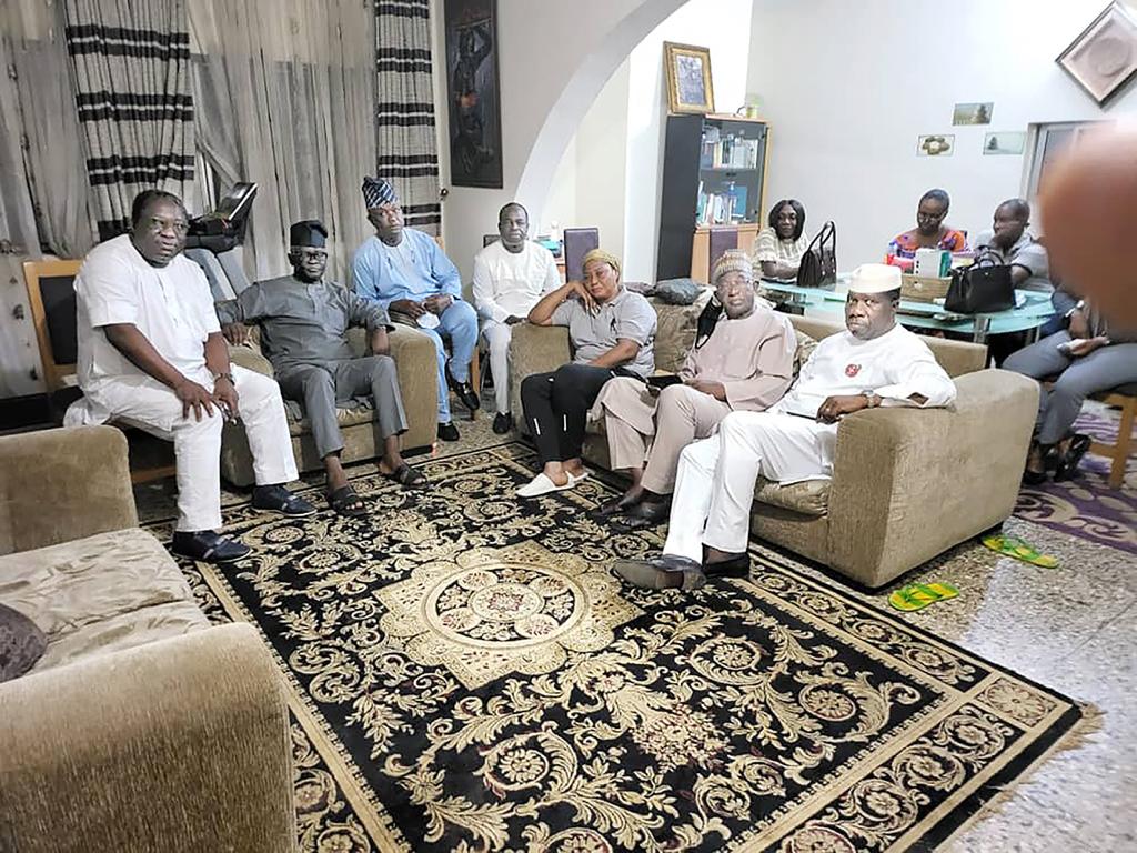 Senator Tokunbo Afikuyomi, Senator Olubunmi Adetunmbi, Senator Jide Omoworare, Hon Kayode Oladele, Senator Lawal Shuaibu and Senator Opeyemi Bamidele, on Thursday, visited the residence of the late Senator Gbenga Aluko to sympathise with the wife, Sileola, and members of the family.
