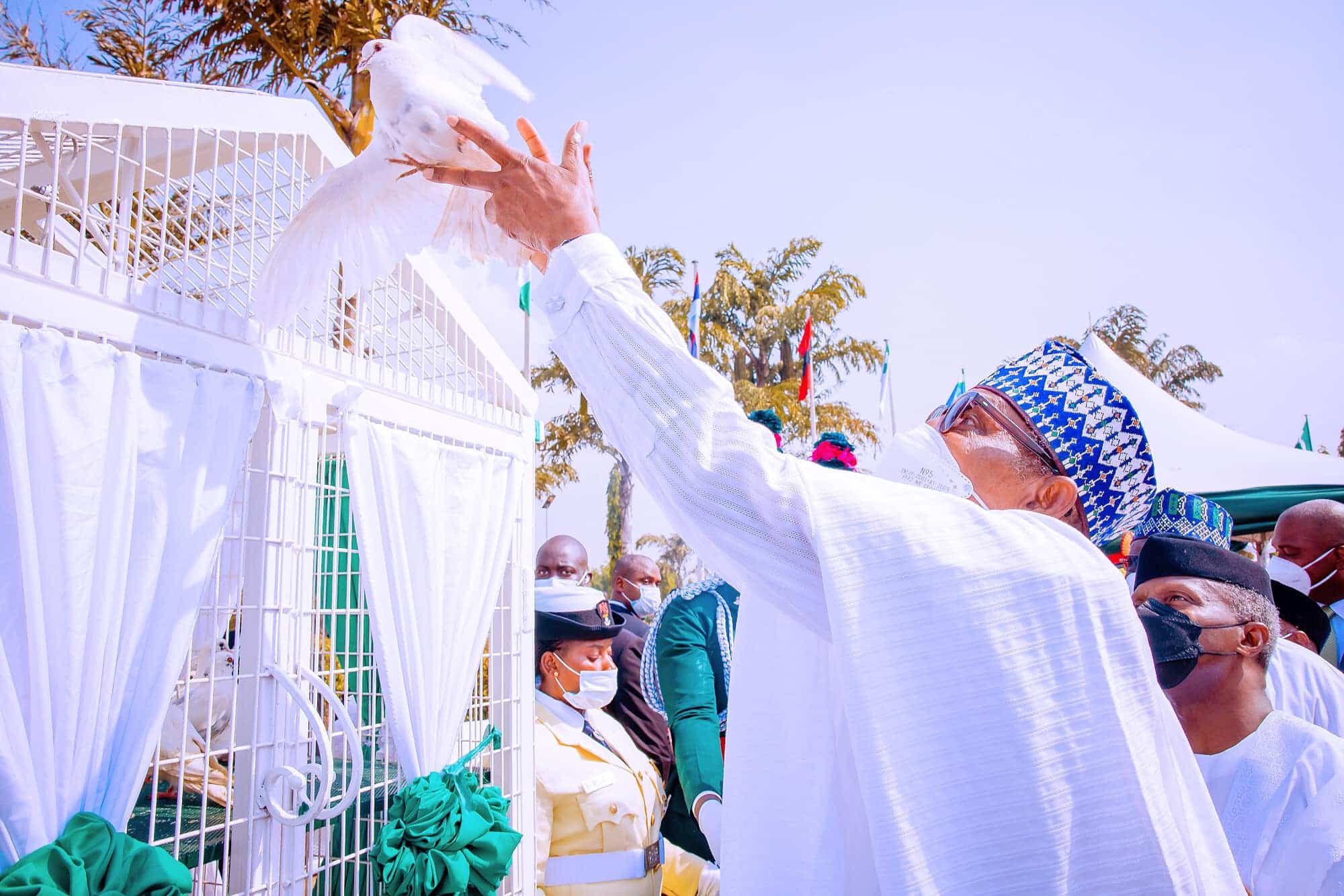 Buhari, thereafter, signed the anniversary register and released the ceremonial pigeon as a symbol of national peace.