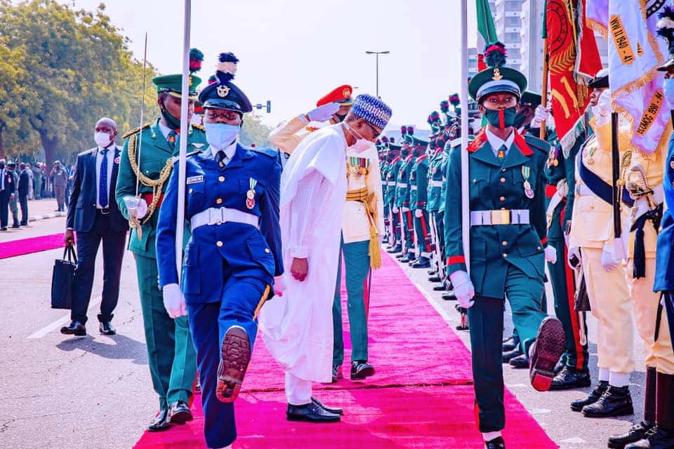 Thereafter, the Chief of Defence Staff, Gen. Lucky Irabor; the Chiefs of Army, Lt.-Gen. Faruk Yahaya; Chief of Air Staff, Air Marshal Isiaka Amao and Chief of Naval Staff, Vice Adm. Awwal Gambo, performed the exercise.