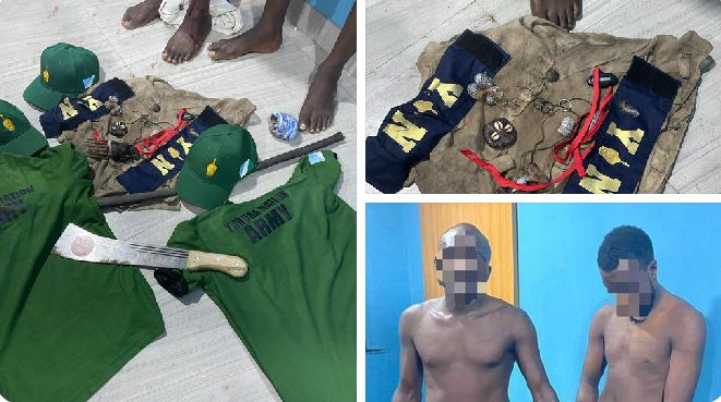 The suspects were arrested in posession of various charms and clothes with the inscription: “Yoruba Nation Police, Yoruba Nation Army.”