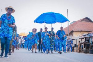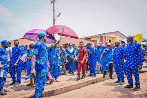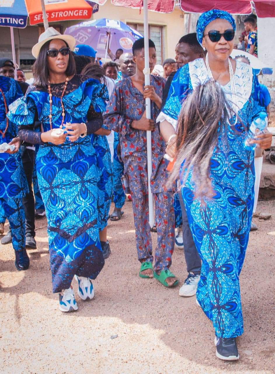 Decked in uniform Ankara attires, the people of Owo in their hundreds trooped out to join the Ajabue traditional procession which started from the late Governor’s residence, Ijebu-Owo, GRA.
