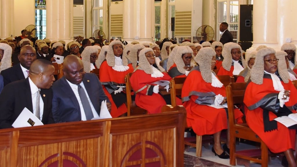 Lagos State Governor, Mr. Akinwunmi Ambode (second left); Secretary to the State Government (SSG), Mr. Tunji Bello (left); Chief Judge of Lagos State, Justice Olufunmilayo Atilade (right) and others during the 2016/2017 Legal Year Service at the Cathedral Church of Christ, Marina, Lagos…on Monday.