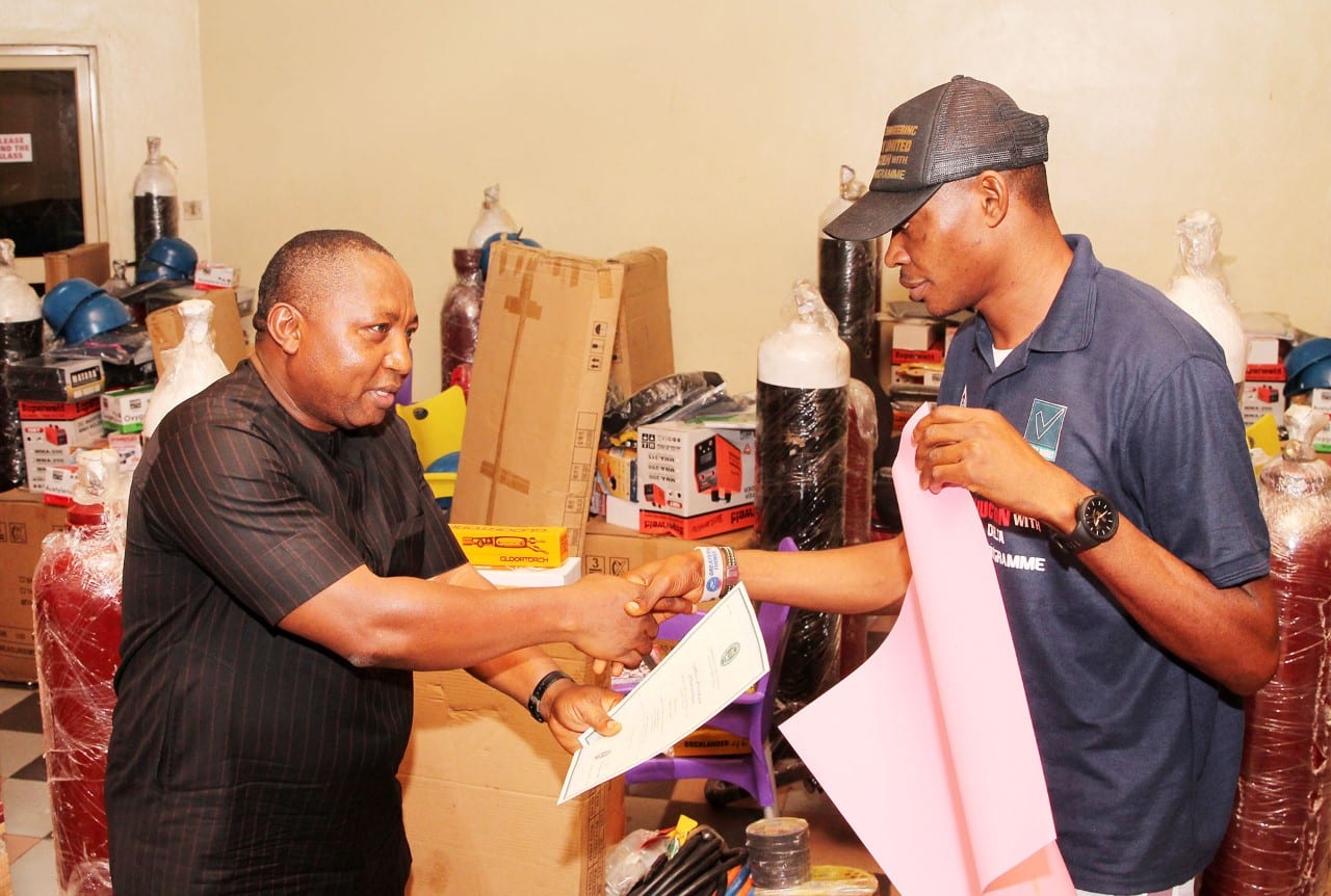 Various items including high capacity welding generators and accessories, cylinders, deep freezers, chairs and tables as well as bags of cement, among others, were given to the beneficiaries who had completed training in welding and fabrication, commodity shop management, building materials, and electrical/electronics.