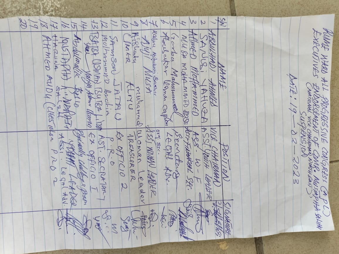 The notices of suspension were signed by the Vice Chairman of APC in Rumde Ward, Abdulhadi Ahmed, the Secretary, Garba Mohammed and 16 others.