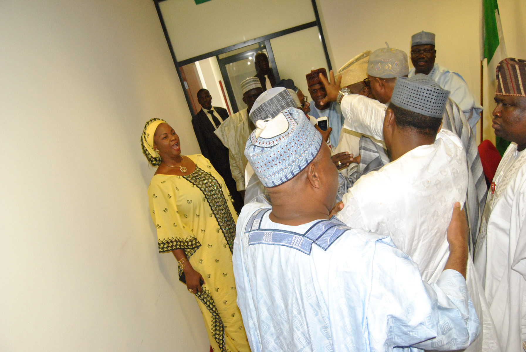 Some All Progressives Congress (APC) Senators in a shouting match after a meeting to choose principal officers which ended in a deadlock in Abuja…on Tuesday