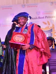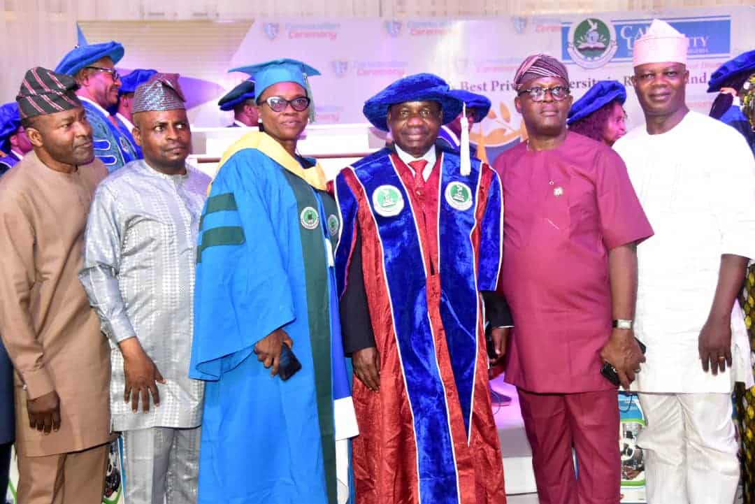 In the audience were the Chairman and Visitor of the University, Dr. Ola Adebogun; Vice-Chancellor, Prof. Nosa Owens-Ibie; Ooni of Ife, Oba Adeyeye Enitan Ogunwusi; Rev. Mother Esther Ajayi; Member House of Representatives for Kosofe Federal Constituency, Mrs. Kafilat Ogbara; former Minister of Information and Culture, Alhaji Lai Mohammed; Police Commissioner Adegoke Fayoade, who represented Police Inspector-General Kayode Egbetokun; Benue State Commissioner for Education and Knowledge Management, Rev. Frederick Ikyaan, who represented Governor Hyacinth Alia, and the MD/CEO, Tpumpy Estate Development, Mr. Akintayo Adaralegbe.