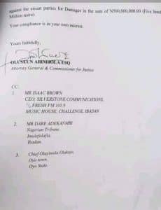 “We expect the governor to have waited for the determination of the case filed before the Oyo State High Court to be properly dispensed before his unilateral decision to forcefully evict and demolish the Music House building belonging to Mr. Yinka Ayefele, who claimed to have possessed Governor’s consent paper title of the land and other ancillary legal rights to the said property, presumed to be a grand conspiracy ploy to wreck havoc, forcefully seize and takeover the property.