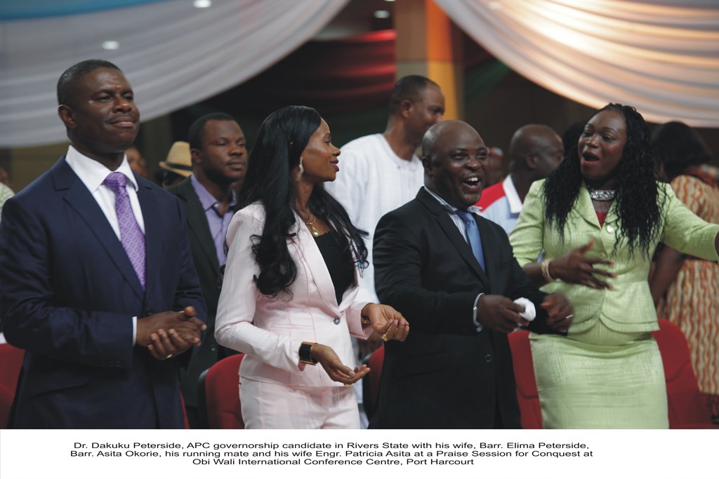 On Tuesday March 25, all roads in Port Harcourt, the Rivers State capital, literally led to Obi Wali International Conference Centre where Christians gathered in praise and worship with Dr. Dakuku Peterside, governorship candidate of the All Progressives Congress (APC) in Rivers State and his running mate, Asita O. Asita.