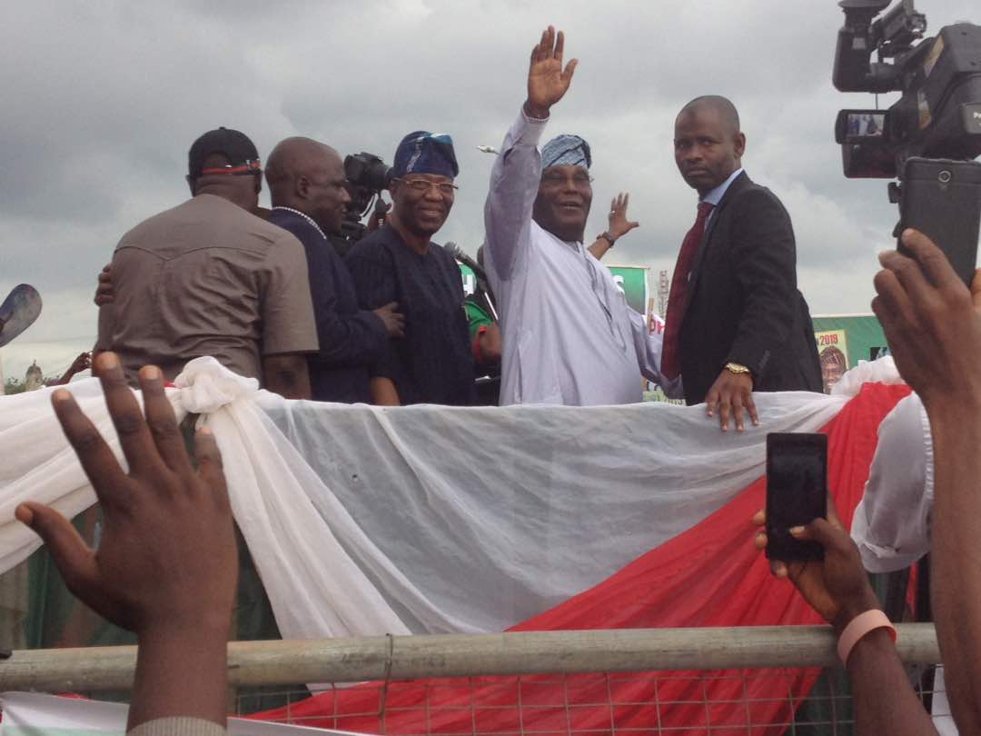It was like a home-coming in Osun state for the former Vice President whose first wife, Titi, is also from the state, as he was widely received at the rally by a tumultuous crowd of well wishers and supporters who kept shouting ‘Atiku! Atiku!! especially when he reminded the people of the South-West how in 2003, he worked tirelessly to take the South-West back form the then Alliance for Democracy (AD).