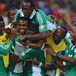 Super Eagles players, after nailing the Flames of Malawi to the cross in the 2014 African qualifiers at the...