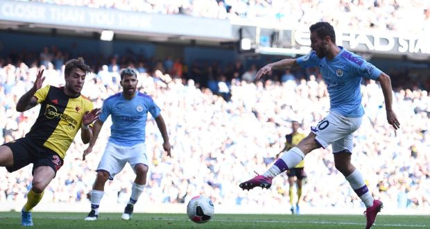 Riyad Mahrez curled a brilliant free kick into the net in the 12th minute, with a Bernardo Silva header and a Nicolas Otamendi tap-in completing the 18-minute rout.