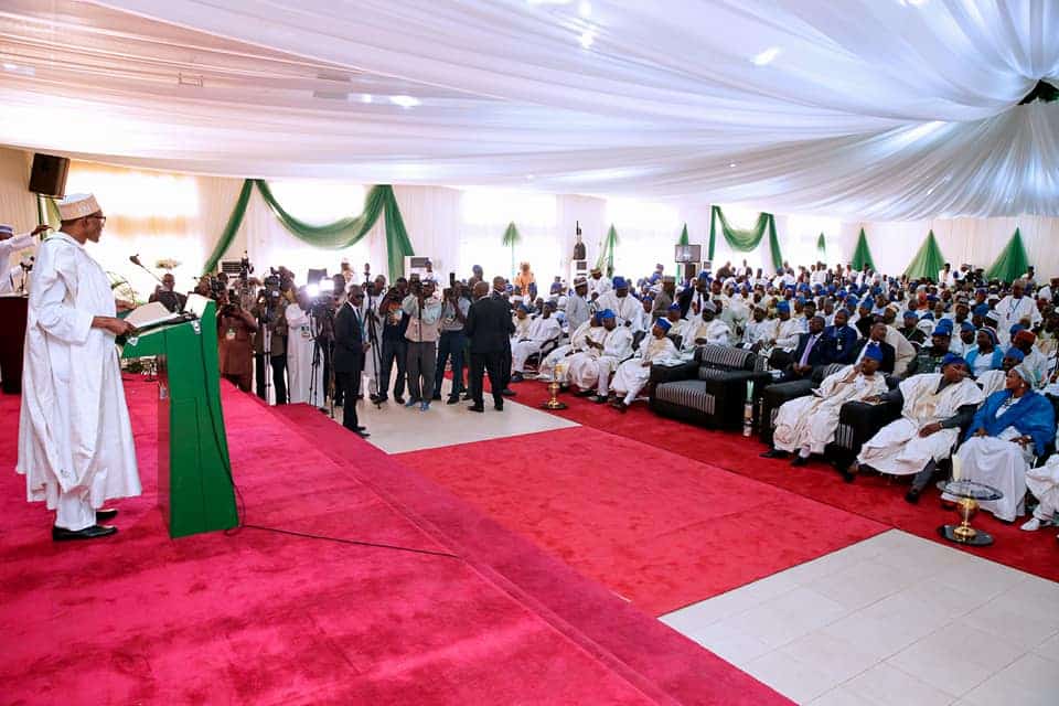 In his welcome address, Governor Muhammadu Bindow of Adamawa State hailed Buhari for his effort in fighting corruption and containing security challenges in the North-East.