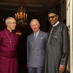 President Muhammadu Buhari (left) shaking hands with President of Afghanistan, Ashraf Ghani, during the Anti-Corruption Summit at the Lancaster House, London…on Thursday. With them is U.S. Secretary of States, John Kerry.