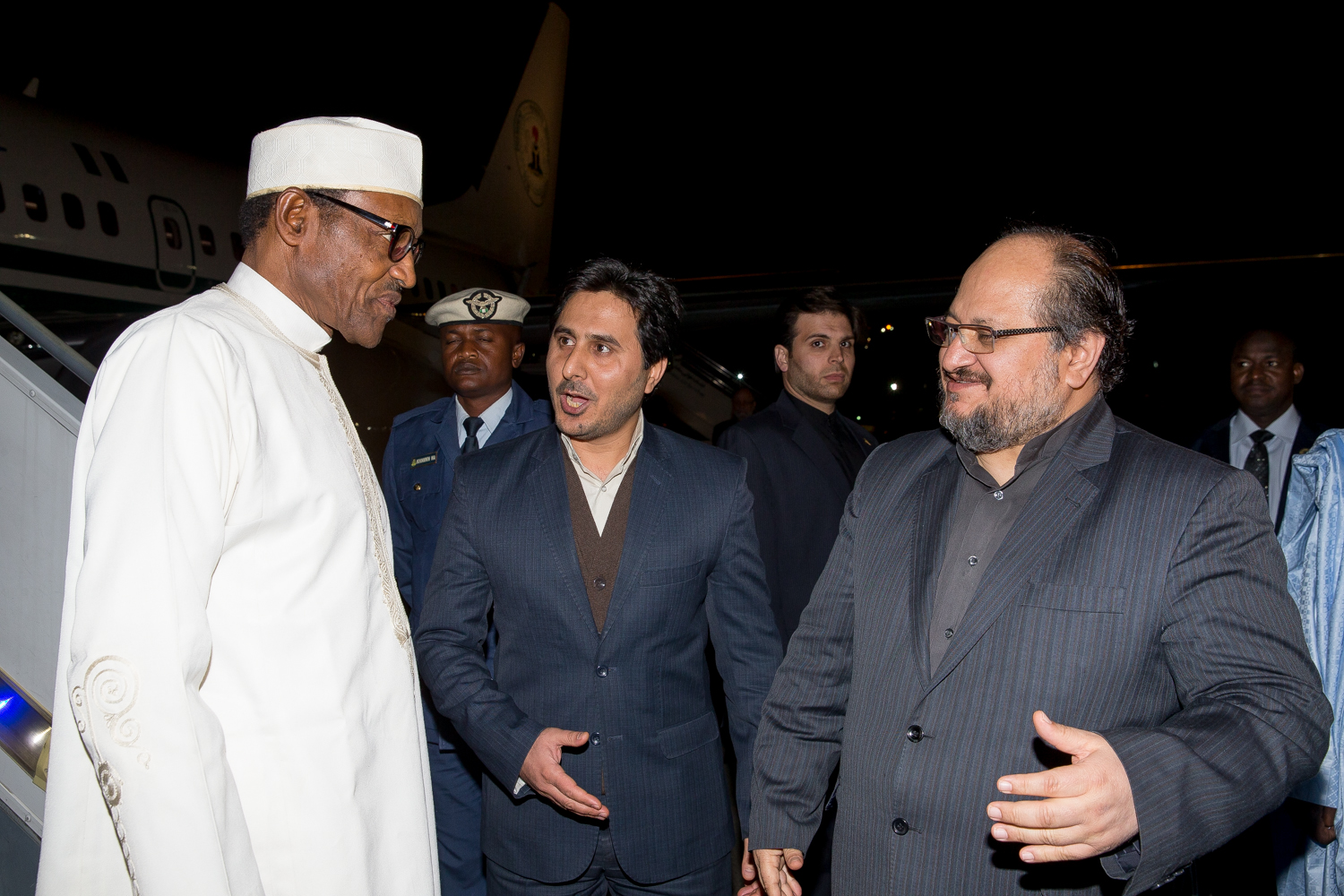 President Muhammadu Buhari being welcomed by the Iranian Deputy President, Mr Shariat Madari, at the Mehrabad Airport, Tehran ahead of the Third Summit of the Gas Exporting Countries’ Forum…on Sunday.
