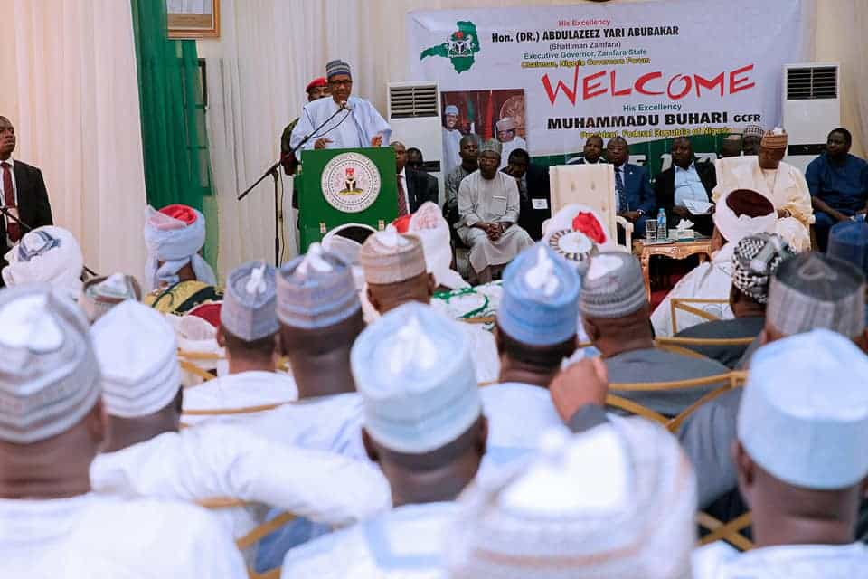 The President was speaking at a town hall meeting with Zamfara traditional rulers, opinion leaders and other stakeholders at the Government House, Gusau.