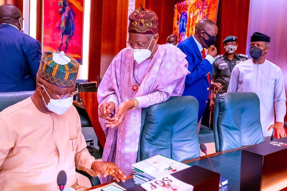 Others at the meeting are the Ministers of Health, Dr Osagie Ehanire, Federal Capital Territory, Mohammed Bello, Humanitarian Affairs, Sadiya Umar, Trade, Industry and Investment, Niyi Adebayo, and labour and Employment, Dr Chris Ngige.