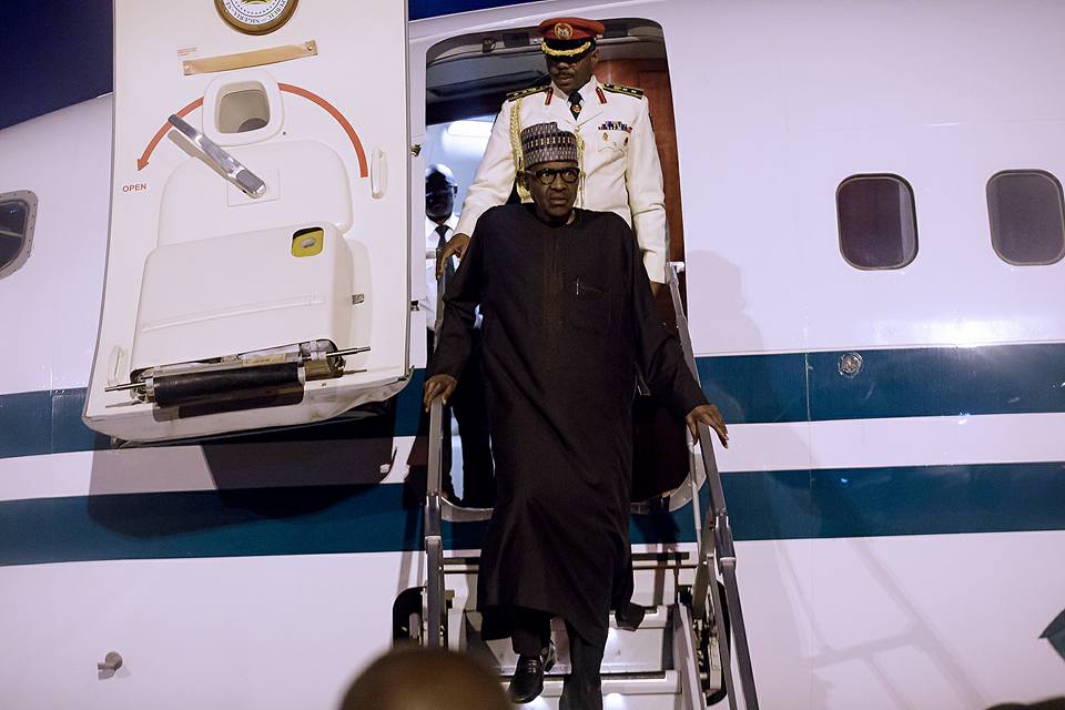 The President’s aircraft landed at the Nnamdi Azikiwe International Airport, Abuja, about 7.p.m, where he was received by top government officials including his Chief of Staff, Abba Kyari and the Inspector-General of Police, Ibrahim Idris.