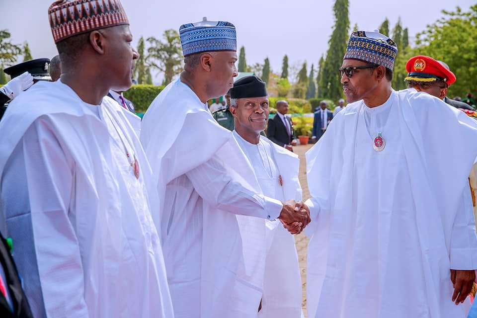 President Muhammadu Buhari exchanging pleasantries with the Senate President, Dr. Bukola Saraki, at the Wreath Laying to mark the end of the Armed Forces Remembrance Day celebrations at the National Arcade, Eagle Square, Abuja…on Tuesday.