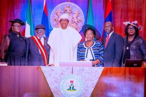 President Muhammadu Buhari has sworn in Justice Olukayode Ariwoola as substantive Chief Justice of Nigeria (CJN) at the Council chamber of the State House, Abuja, on Wednesday.