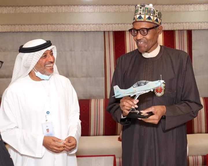 President Muhammadu Buhari with CEO/ Managing Director, Edge Group, Dr. Faisal Al Bannai during a visit to the Edge Group’s industrial plant in Abu Dhabi, UAE.