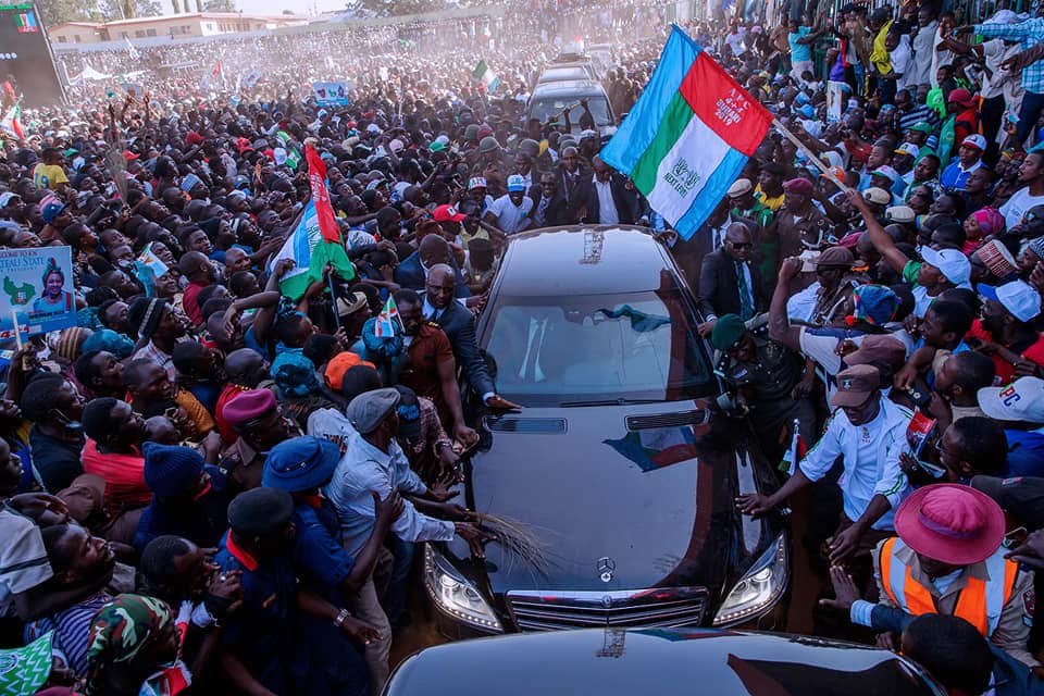 It took the president’s convoy over an hour to cover a journey of 10 minutes following the inability of the security officials to control the mammoth crowd blocking the motorcade.