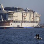 Read moreDetailsThe hulking shell of the world's largest cruise ship slid into the waters off western France on Friday, with workers...