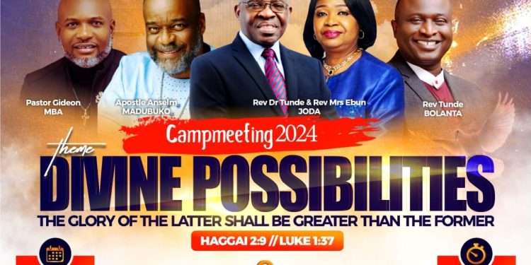 The camp meeting, which will hold at the church’s headquarters, Akin Mateola Street, Off Raji Rasaq Road, Amuwo Odofin Phase II, Lagos, has as its theme, Divine Possibilities (The glory of the latter be greater than the former).