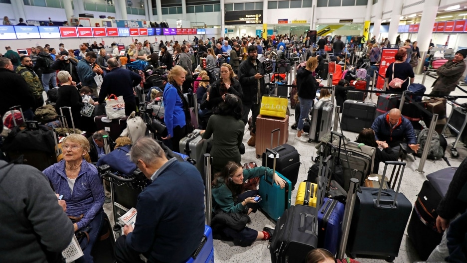 The airport and Gatwick’s biggest airline EasyJet told passengers to check before traveling to the airport as several thousand people waited there in chaotic scenes.
