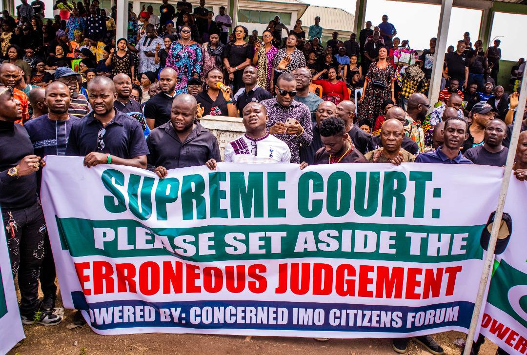 The group called on the Supreme Court to take a second look at the 14th of January Judgement on Imo governorship and correct the errors, while setting it aside by restoring the mandate given to Emeka Ihedioha by the people of Imo State on March 9, 2019.