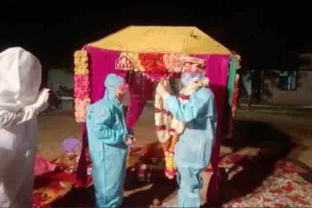 A couple in northern India, on Monday, decided to get married at a COVID-19 Care Centre, donning protective suits for the ceremony, after the bride tested positive on their wedding day.