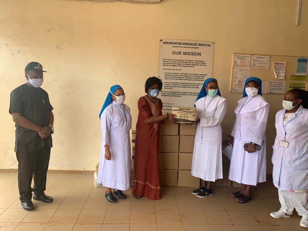 The team led by the former Commissioner for Budget and Economic Planning, Prof Stella Okunna, handed over some relief materials from Mr. Peter Obi, to Bishop Chukwuma, the Founder of The Good Shepherd Specialist Hospital, Enugu. The items included one carton of 2,000 face masks, eight cartons of hand gloves, four cartons of sanitisers, eight big cartons of paracetamol and an infrared thermometer.