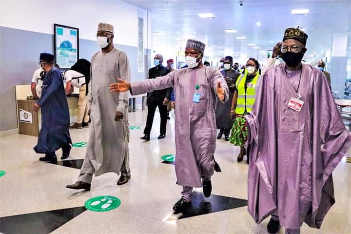 The taskforce held the briefing at the Abuja airport where the SGF, the Minister of Aviation, Hadi Sirika; Health Minister, Dr. Osagie Ehanire; Information and Culture Minister, Lai Mohammed; and Minister of State for Health, Senator Olorunnimbe Mamora, among other top government officials, took a tour of facilities put in place at the airport to assess the level of preparedness for Saturday’s reopening of the country’s to international air travels.