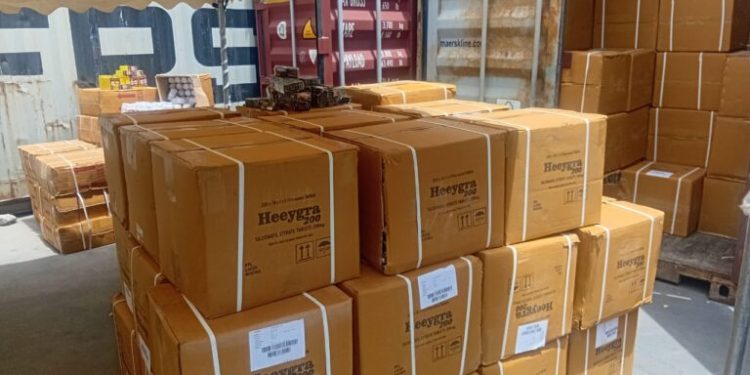 The seizures included 89 cartons of unregistered pharmaceutical products in container CAAU6514500, 242 cartons in container TCNU6880130, and 1,001 cartons of hydra-sildenafil citrate tablets in container MRSU3041714.