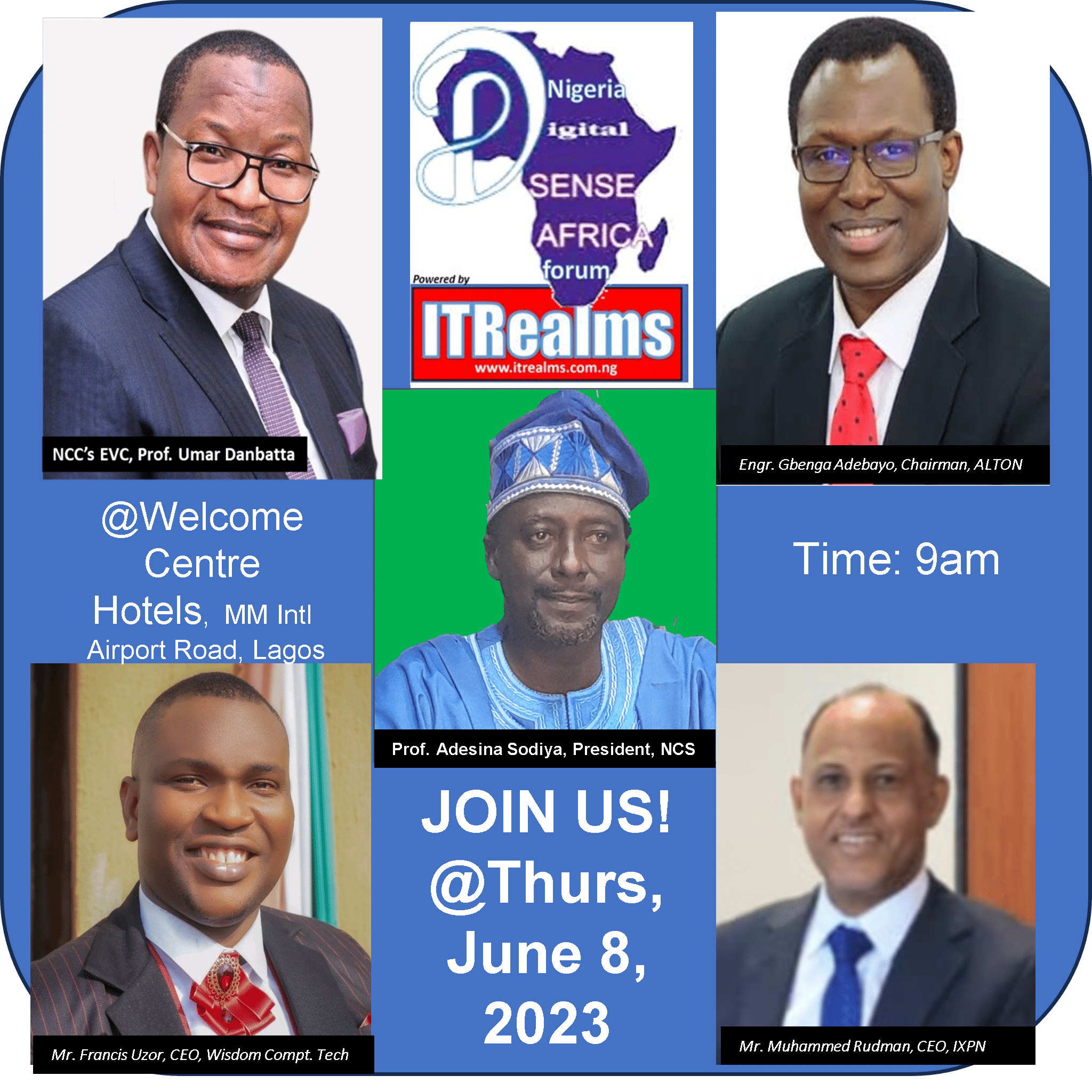 The multiple award-winning Executive Vice Chairman and Chief Executive Officer of the Nigerian Communications Commission (NCC), Prof. Umar Garba Danbatta, the chairman, Association of Licensed Telecommunication Operators of Nigeria (ALTON), Engr. Gbenga Adebayo, Managing Director, Internet Exchange Point of Nigeria (IXPN), Mr. Muhammed Rudman, and Chief Executive Officer of Wisdom Computer Technologies, Mr. Francis Uzor, would be leading a team of speakers at the 2023 Nigeria DigitalSENSE Africa Forum (NDSF) series on Internet Governance for Development (IG4D) holding this Thursday, June 8, in Lagos.