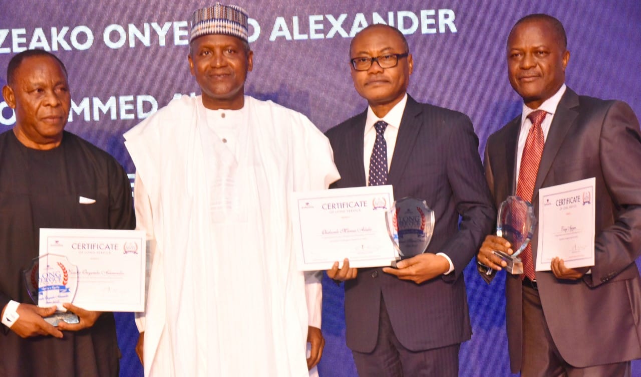 The Group Executive Director, Logistics and Distribution, Dangote Industries Limited, Alhaji Abdu Dantata, emerged the highest living awardee for his 36 years of service, while the Group Managing Director, Mr. Olakunle Alake, who gave the welcome remarks, was given an outstanding ovation for his 29 years of loyalty in service to the organisation.