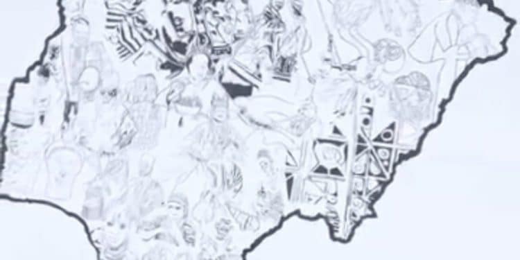 The drawing, “Unity in Diversity”, showcases the diverse ethnic groups of Nigeria through their unique attire, languages, culture, and artistic expressions.