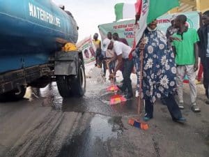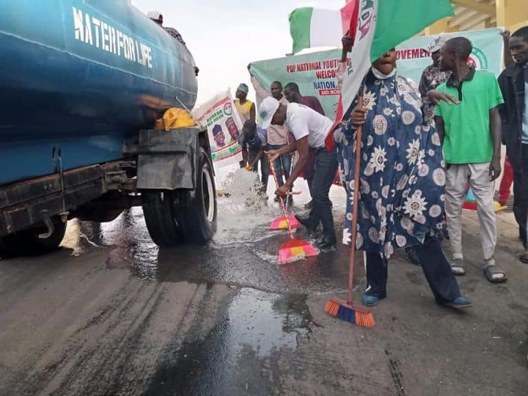 Many Jos residents, majorly youths, who are supporters of the opposition Peoples Democratic Party (PDP) in their numbers, on Wednesday, trooped to the Rwang Pam Stadium, venue of the APC campaign flag-off to engage in cleansing exercise.