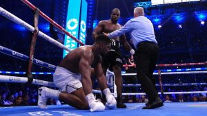 Dubois was still quicker to the jab in the third round as Joshua’s head was snapped back time after time. He was being forced to hold the champion when he wasn’t backpedaling. When he did throw, Joshua was falling short and he was dropped again at the end of the round, falling to the canvas after the bell.