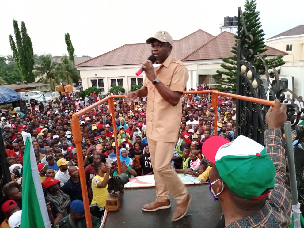 Edo State Deputy Governor, Philip Shaibu, on Thursday in Jattu, Etsako West Local Government Area, expressed joy over the large turn out of supporters at campaign rallies, and described the development as “thrilling”.