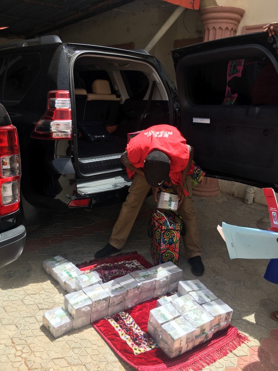 Items recovered from him at the point of arrest include one Black Toyota Land Cruiser Prado SUV with registration number DKA 67 PX Kaduna loaded with four bags of Ghana Must go containing One Thousand Naira Note of Fifteen Million Naira each, totalling to Sixty Million Naira; One single barrel gun; One locally made Revolve Pistol, 25 rounds of cartridges and 12 rounds of 12.9mm live ammunition.