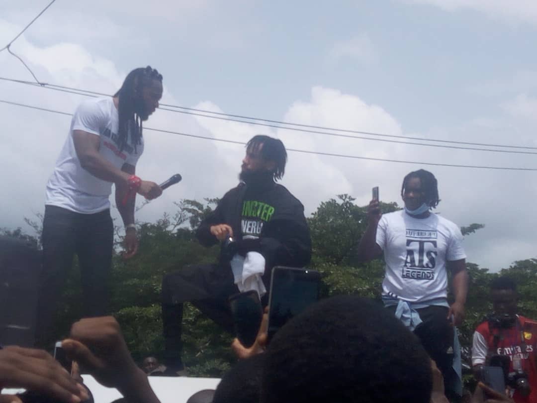 The protest was led by celebrities in the state, Chinedu Izuchukwu Okoli (Flavour), Chibuzor Nelson Azubuike,(Phyno) and Rapper Zoro.