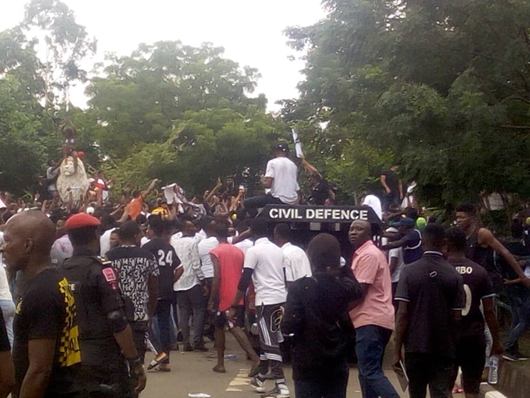 The protesters who trouped out in thousands around 7 am, gathered at Ogbete market area of Enugu town where they took off to the State Police Headquarters.