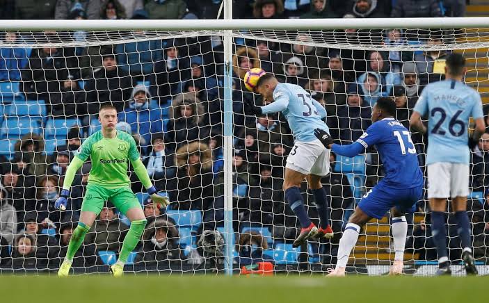 A poor clearance from Yerry Mina, Everton’s Colombia defender, gifted Manchester City possession and Leroy Sane, chosen ahead of Raheem Sterling, slipped in Jesus who confidently slotted past Jordan Pickford.