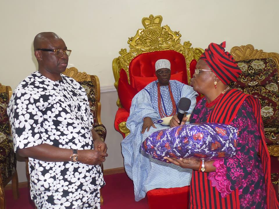The Eyegba of Ado-Ekiti, Chief Mrs Abike Sonaike, later presented a gift to the governor on behalf of the Ewi-in-Council.