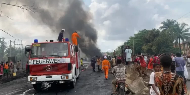 Two persons lost their lives on Sunday following a tanker explosion opposite the Federal Road Safety Corps (FRSC) office along the Ihiala-Onitsha Road in Ihiala Loca Government Area of Anambra State.