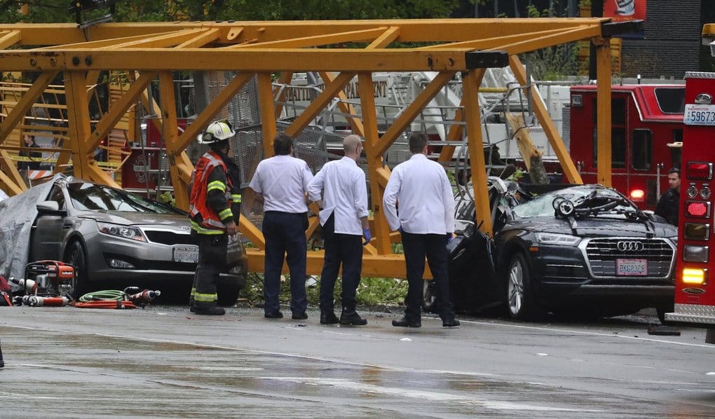 Two crane operators and two other persons in separate cars were dead by the time Seattle firefighters got to the site, Fire Chief Harold Scoggins said.