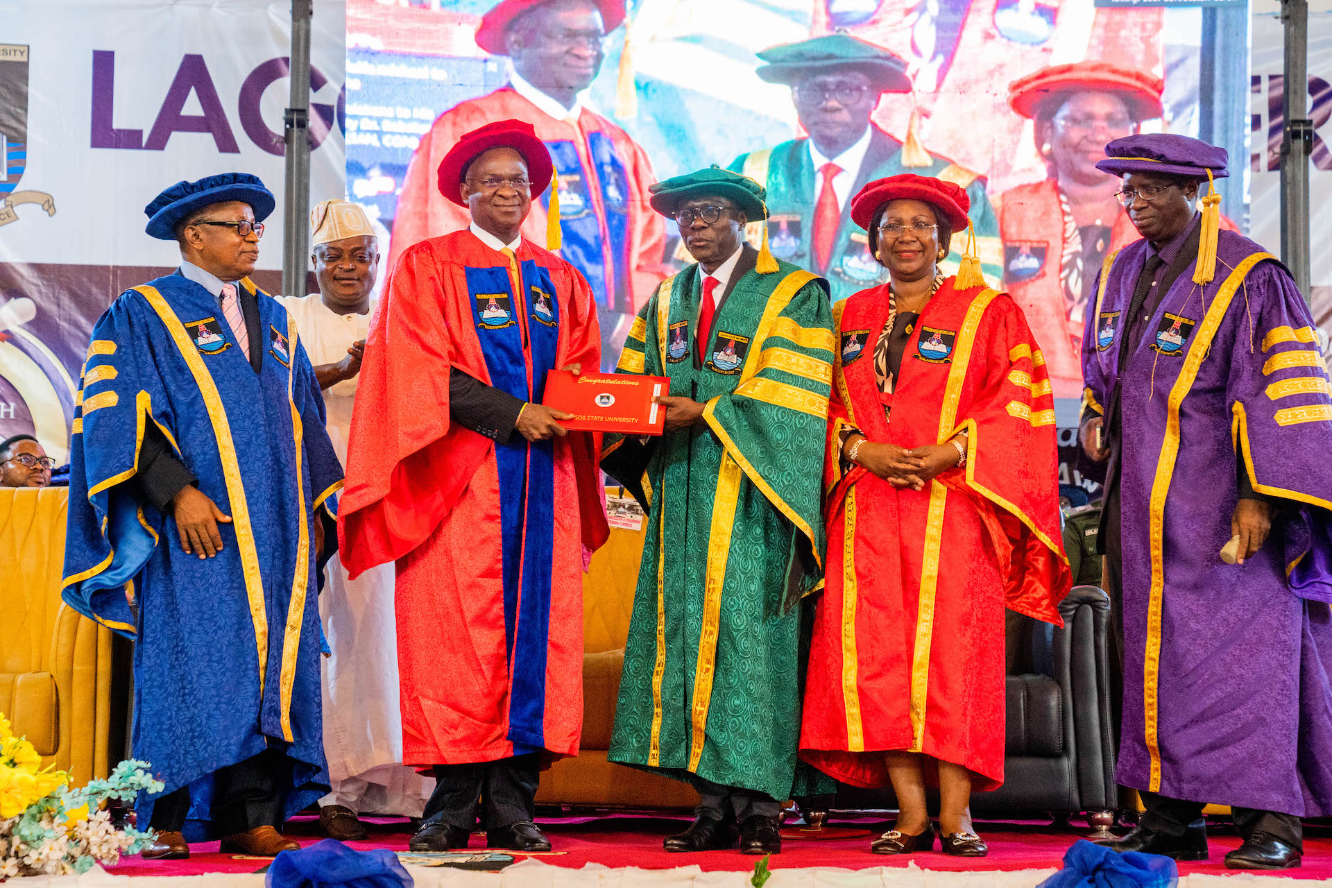 Former Minister of Works and Housing, Mr Babatunde Fashola (SAN), has been awarded Honorary Doctorate Degree award at the 26th convocation of Lagos State University, Ojo.